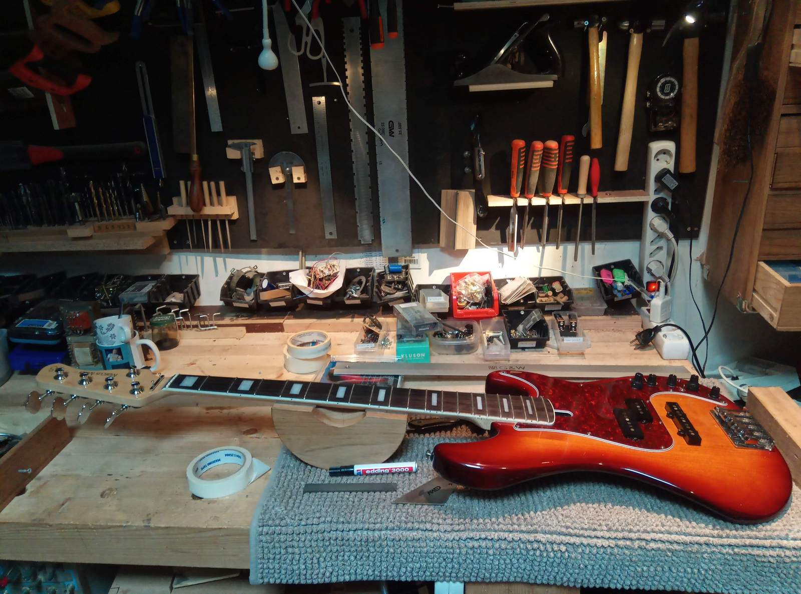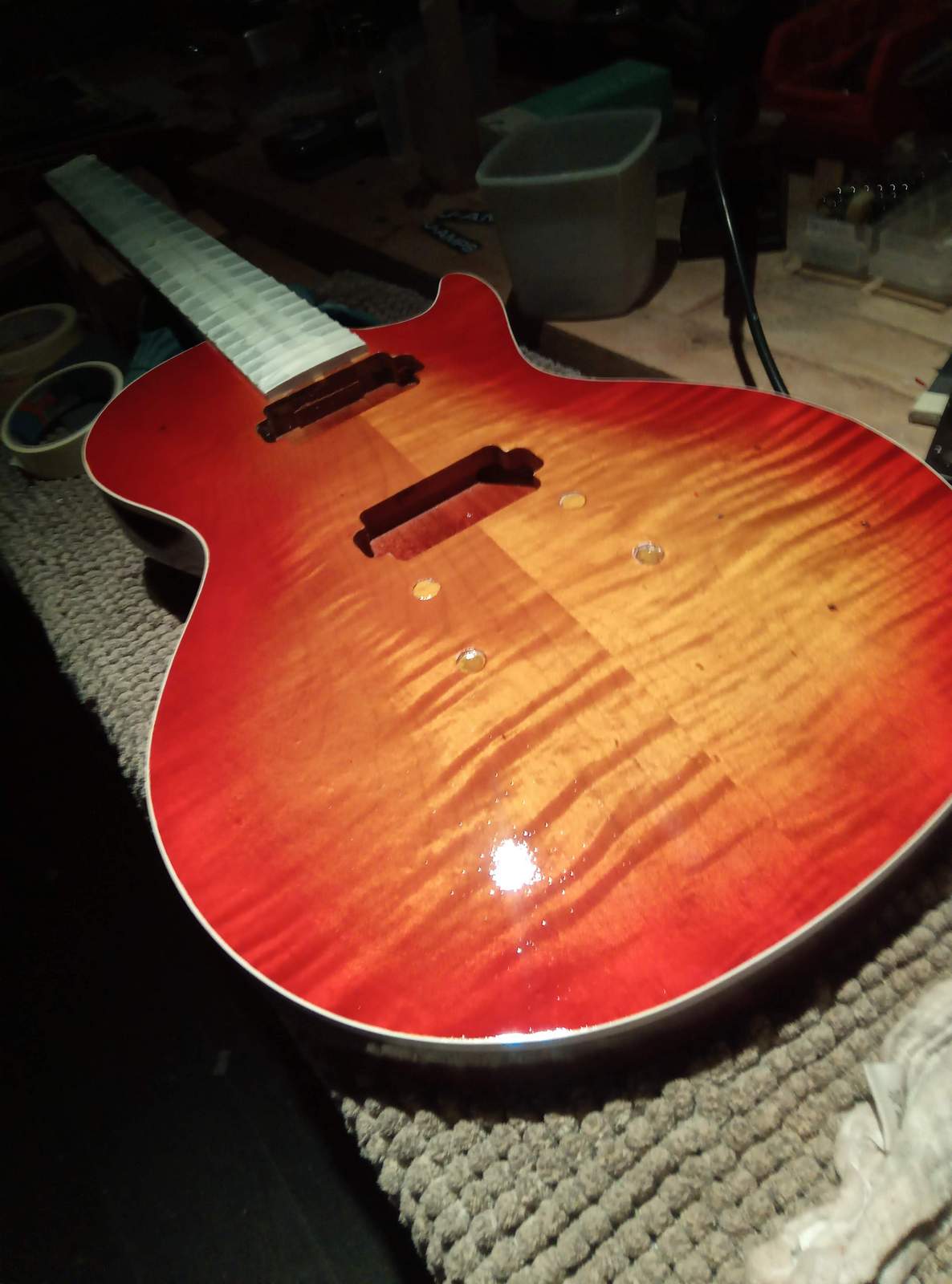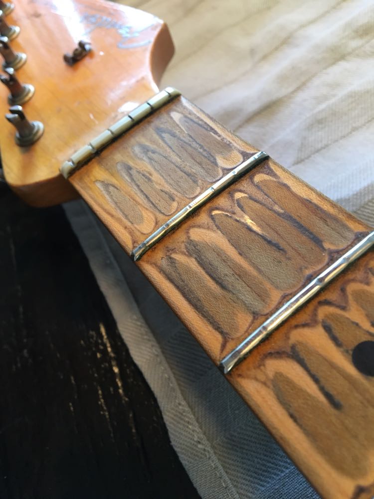 Deze Fender strat met jumbo frets kunnen zeker nog een paar keer gevlakt worden.